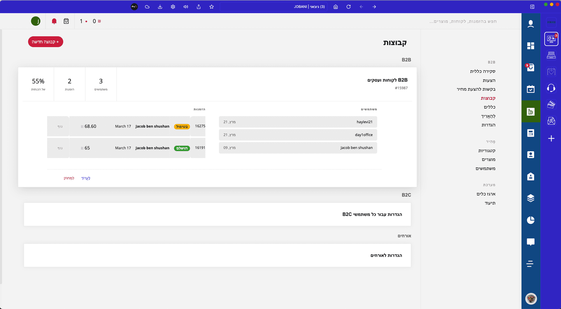 המערכת שלנו מאפשרת יצירה וניהול של קבוצות משתמשים מותאמות אישית, כאשר לכל קבוצה ניתן להגדיר הרשאות וגישות שונות למערכת. היכולת ליצור קבוצות משתמשים מאפשרת לעסקים לחלק את הגישה למערכת לפי תפקידים ומחלקות, כך שכל עובד או מחלקה תוכל לראות ולנהל רק את המידע הרלוונטי לה. זה מבטיח גם אבטחת מידע גבוהה יותר ומקל על הניהול היומיום של העסק.